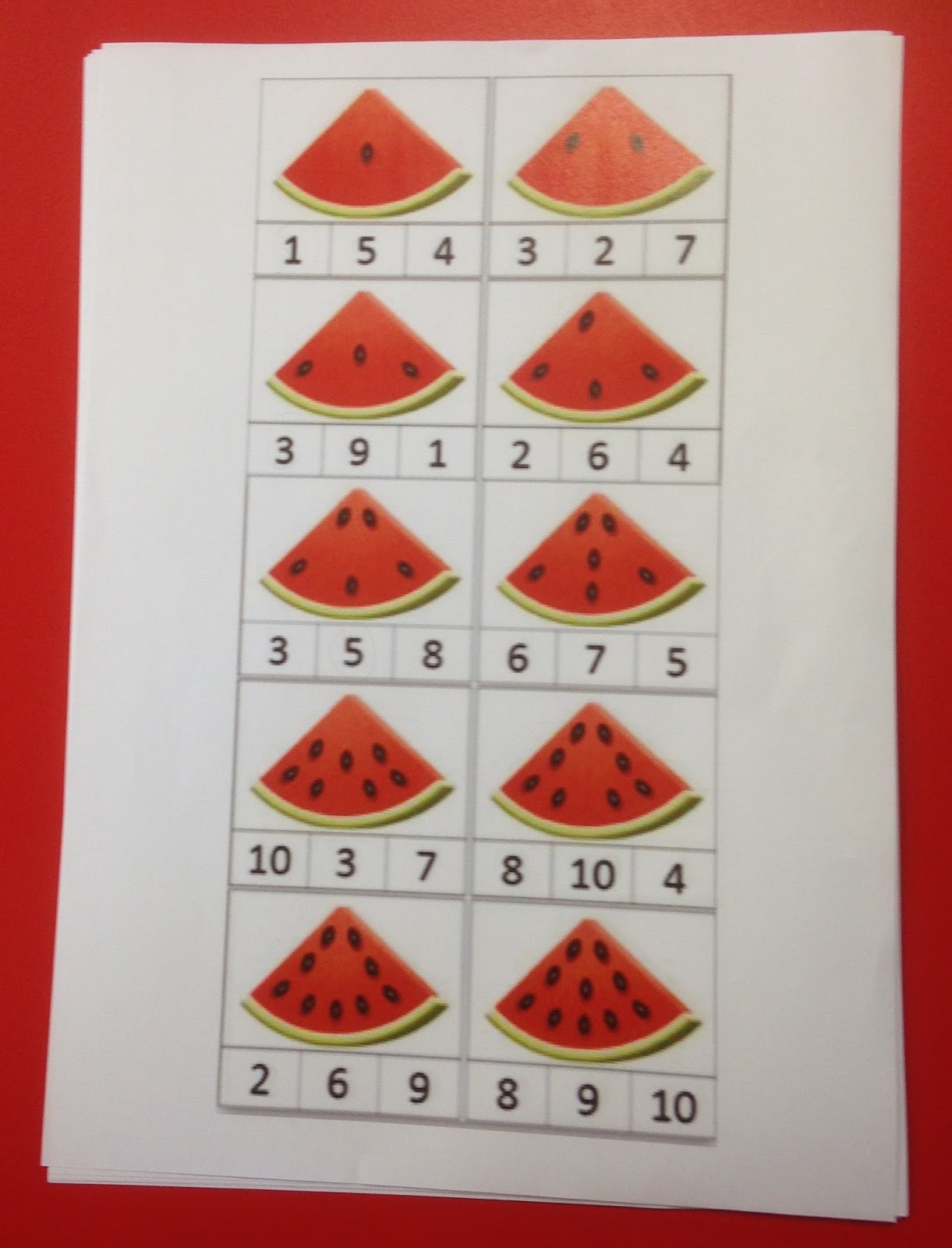We counted watermelon seeds and matched them with the correct number.