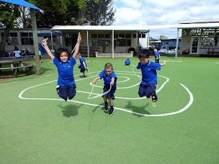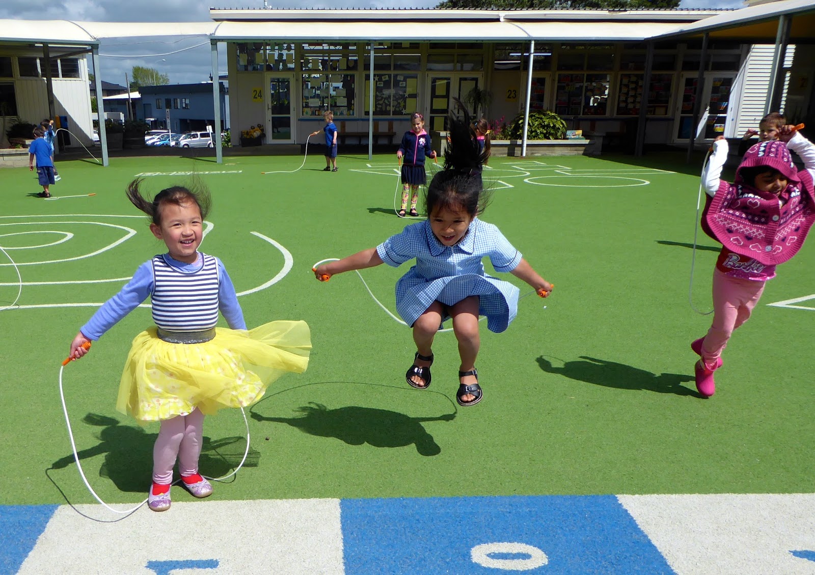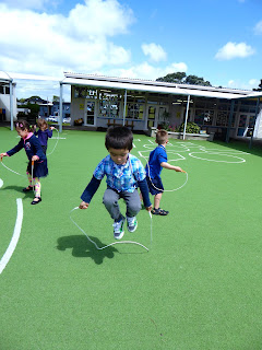 Then we used the ropes for jumping. Boy, can we jump high!